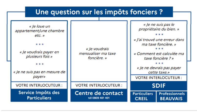 Besoin d’un rappel sur les compétences des différents services en matière d’impôts fonciers ? Cliquez ici.